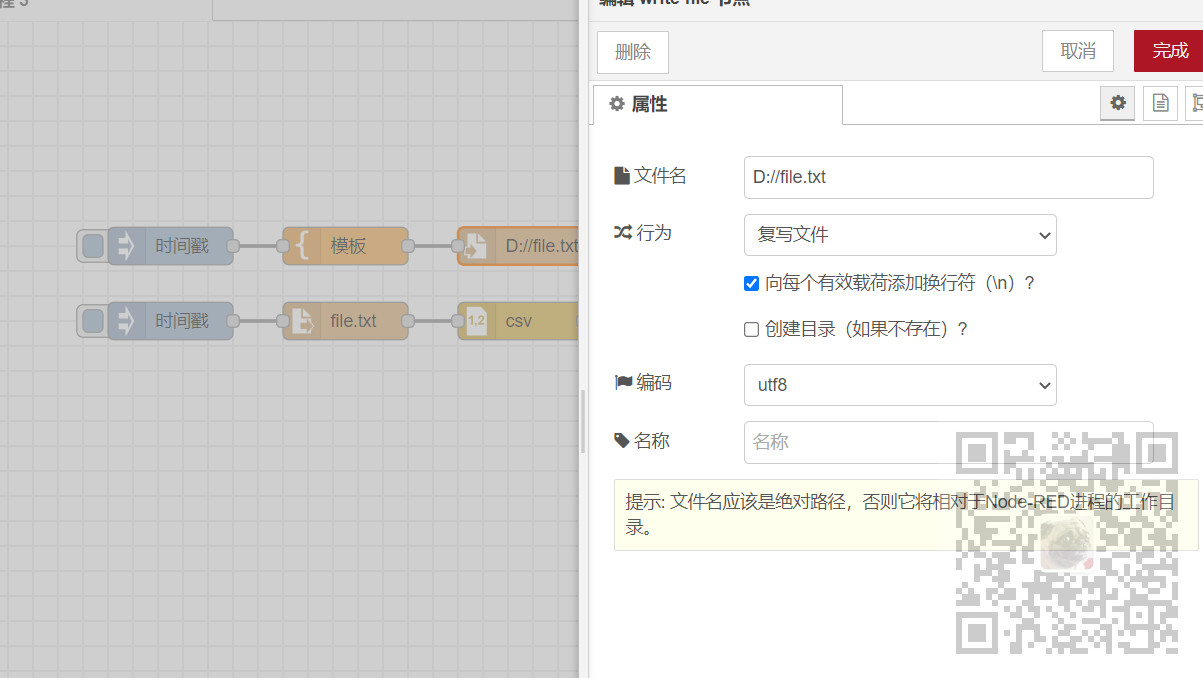3、file节点,将csv资料用utf-8编码写入D://file.txt